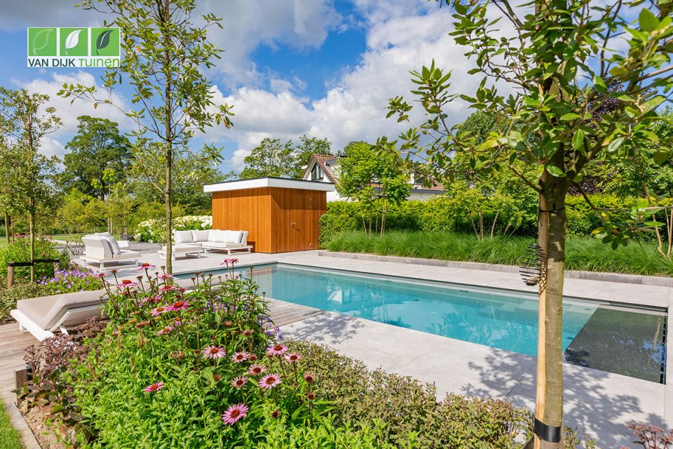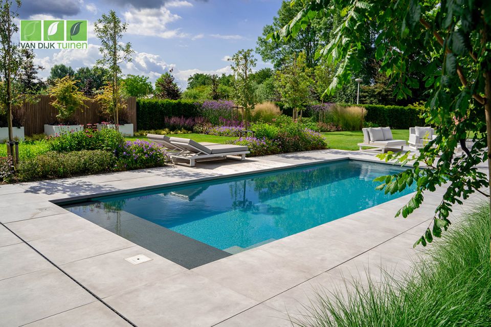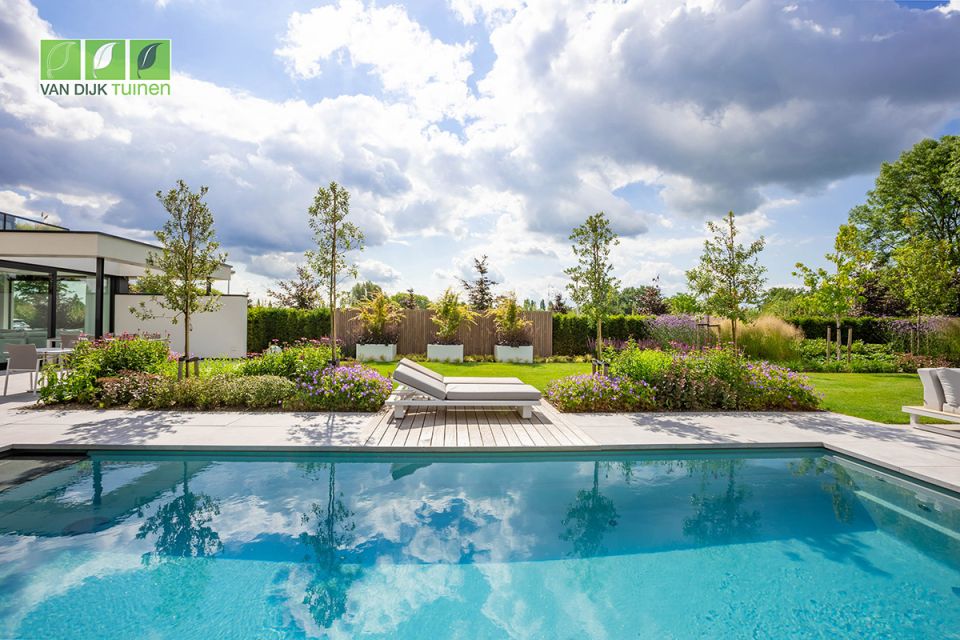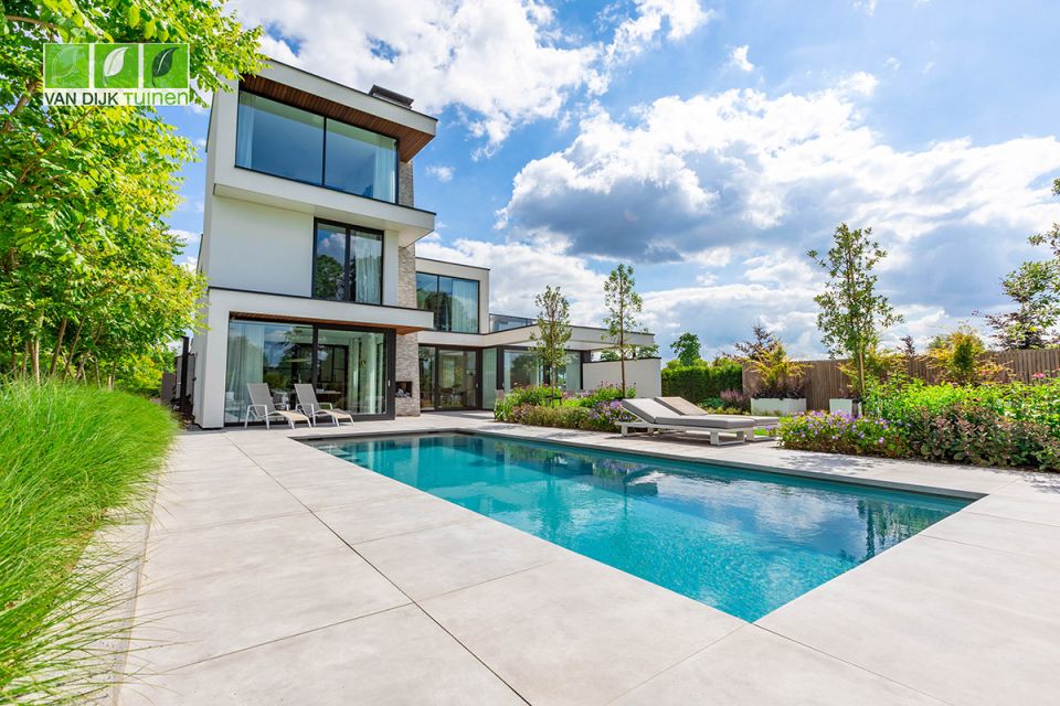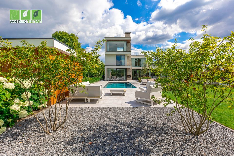 Deze tuin vonden we echt heel gaaf om te doen! We hebben deze tuinliefhebbers in Vleuten blij mogen maken met een hele moderne leeftuin waarbij de grootsheid van het huis wordt geaccentueerd door het gazon. Het vertrekpunt van de tuin was een pas gebouwde woning en een heel leeg kavel. We hebben écht alles mogen aanleggen. De bewoners wilde een tuin die passend is bij de moderne woning. Met de aanleg van het terras en een zwembad is die opdracht zeer geslaagd.