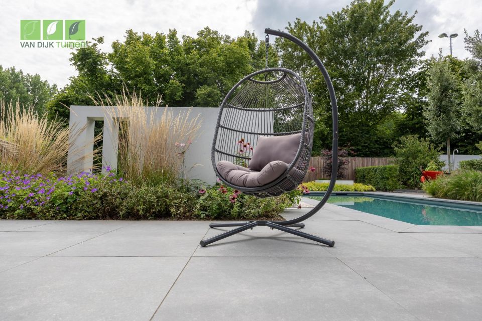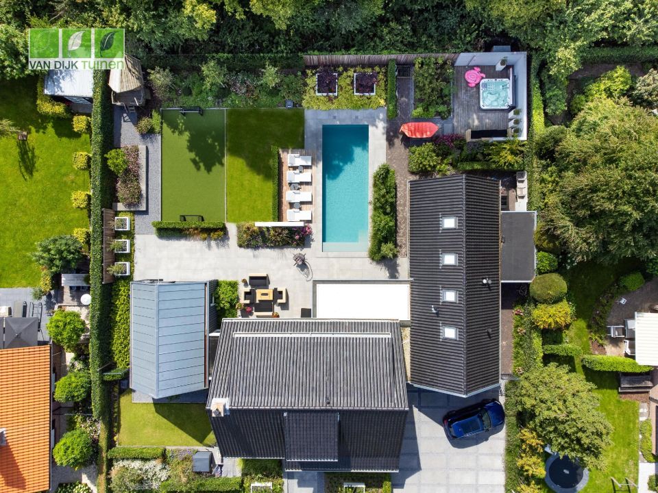 De bewoners van deze villa wilden graag een tuin die goed bij de woning paste en waar het hele gezin volop gebruik van kon maken. We zijn met onze architect aan de slag gegaan en kwamen 4 weken later met een ontwerp in 2D en 3D. Er is een zwembad en een jacuzzi op een mooie plek in de tuin gerealiseerd, omgeven door veel beplanting waardoor je een echt vakantiegevoel ervaart. Vanwege de beplanting is privacy gewaarborgd.